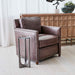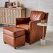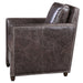 Classic Parisian club chair, with comfortable box cushions and birch frame, featuring character distressed, full grain leather with complementary antique nail head trim. Because leather is a natural product, both texture and color will vary slightly, enhancing leather's uniqueness. Seat height is 19".