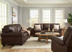 Details 5210738: Corner-blocked frame, Attached back and loose seat cushions, High-quality foam cushions wrapped in poly fiber, 100% top grain leather covers inside areas such as the back, seat and arm cushions; skillfully matched faux leather covers the remaining areas, Due to its natural origin, real leather can show individual characteristics such as healed scars, growth marks, grain variation and shade variation, Natural variations make each hide unique and do not detract from the wearing qualities of leather, Pigmented corrected grain leather with slight embossing and a light contrast spray effect to add more depth, Exposed feet with faux wood finish, Platform foundation system resists sagging 3x better than spring system after 20,000 testing cycles by providing more even support, Smooth platform foundation maintains tight, wrinkle-free look without dips or sags that can occur over time with sinuous spring foundations, 5210735: Corner-blocked frame, Attached back and loose seat cushions, High-quality foam cushions wrapped in poly fiber, 100% top grain leather covers inside areas such as the back, seat and arm cushions; skillfully matched faux leather covers the remaining areas, Due to its natural origin, real leather can show individual characteristics such as healed scars, growth marks, grain variation and shade variation, Natural variations make each hide unique and do not detract from the wearing qualities of leather, Pigmented corrected grain leather with slight embossing and a light contrast spray effect to add more depth, Exposed feet with faux wood finish, Platform foundation system resists sagging 3x better than spring system after 20,000 testing cycles by providing more even support, Smooth platform foundation maintains tight, wrinkle-free look without dips or sags that can occur over time with sinuous spring foundations, 5210725: One-pull reclining motion, Corner-blocked frame with metal reinforced seat, Attached back and seat cushions, High-quality foam cushions wrapped in poly fiber, 100% top grain leather covers inside areas such as the back, seat and arm cushions; skillfully matched faux leather covers the remaining areas, Due to its natural origin, real leather can show individual characteristics such as healed scars, growth marks, grain variation and shade variation, Natural variations make each hide unique and do not detract from the wearing qualities of leather, Pigmented corrected grain leather with slight embossing and a light contrast spray effect to add more depth,