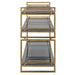 A Functional Accent That Allows For Creativity As Entryway Piece Or Even As A Bar. Features A Striking Combination Of Smoked Gray Glass With Geometric Iron Supports Finished In Lightly Antiqued Gold.