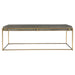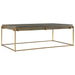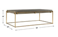 A Contemporary Combination Featuring An Acacia Veneer Top In A Dark Walnut Stain Washed With A Light Gray Glaze, Suspended In A Stainless Steel Framework Plated In Brushed Brass.