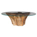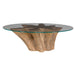 Nature has sculpted a stunning art piece that provides beauty and function. Made from a plantation-grown teak tree. Every table will vary ensuring its uniqueness. A 54" round clear glass top is included.