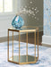 Details | Made with glass and metal, Frame with goldtone finish, Glass top, Mirrored inset, Minor assembly required | |