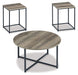 Details | Includes round coffee table and 2 square end tables, Made of metal and engineered wood, Frame with dark metallic finish; top with decorative laminate wood grain finish, Assembly required | |