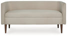 Details | Polyester upholstery, Wood legs with brown finish, Attached seat cushion, Curved back, Minor assembly required, simply lay flat and attach feet | |