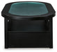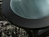 Details | Made with hardwood solids, mindi veneer and MDF substrate, Black finish with wood grain texture, Fluted glass tabletop, Smooth-gliding drawer, Drawer pulls with goldtone finish, Lower open shelf, Casters for easy mobility | |