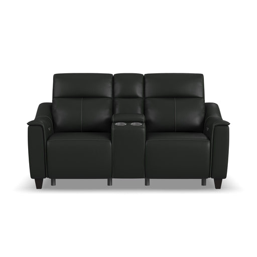 FlexsteelAlluring modern style merges with motion technology in the Walter leather power reclining loveseat with console. Featuring thin, pad-over sloped tr...