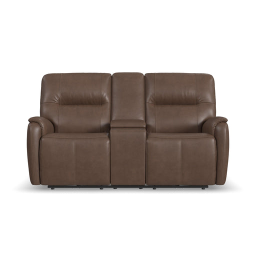 FlexsteelSuperior ergonomics combine with the plush comfort of the Crew leather power reclining loveseat with console. Featuring triple power functionality ...