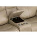 Superior ergonomics combine with the plush comfort of the Crew leather power reclining loveseat with console. Featuring triple power functionality that allows for independent adjustment of the headrests, lumbar supports and recline, this loveseat also features Zero Gravity which reduces pressure and tension on the body. Enjoy reliable comfort all day, every day, with pad-over armrests, waterfall chaise footrests, thin layered headrests, and divided back cushions. Built-in USB ports conveniently charge mobile devices while a center storage console keeps remotes and beverages nearby so you can settle in for a marathon movie night. With Flexsteel's patented Blue Steel Spring™ at the heart of each seat, and high-quality light tan leather, the Crew power reclining loveseat brings exceptional beauty and durability to your home.