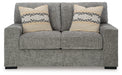 Details | Corner-blocked frame, Loose reversible seat and back cushions, High-density foam cushions wrapped in feather-fiber blend jacket, Accent pillows included, Pillows with feather-fiber blend, Polyester upholstery, Exposed feet with faux wood finish, Platform foundation system resists sagging 3x better than spring system after 20,000 testing cycles by providing more even support, Smooth platform foundation maintains tight, wrinkle-free look without dips or sags that can occur over time with sinuous spring foundations | |