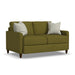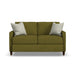 Sweet and Architectural. Clean lines and a cantilevered front make the Fern loveseat a welcome addition to any home. With generous seating space from arm to arm, Fern provides plenty of roomy comfort for two people to lounge and relax together. Round tapered legs positioned directly under the narrow track arms offer a distinctively modern architectural feel to spaces. Loose back cushions with a casual pleat design and the included knife-edge accent pillows complete the on-trend look of Fern.