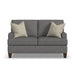 Clean-Lined Comfort. Discover the perfect blend of comfort and design sophistication with the Lloyd loveseat, where mid-century modern inspiration combines with timeless touches. The refined, picture-frame back lends an architectural look and optimal support, while the square tapered legs create an elevated allure. The luxurious t-shaped cushions provide ample seat space between track arms and provide lasting support with the Blue Steel Spring at the heart of each seat. Complete the look with two accent pillows that are customizable to your choice of fabric.