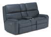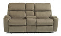 Traditional frame with modern features. Rios traditional frame is highlighted with subtle back wings and inset padded armrests that peek up for an interesting appeal. Its divided back cushion provides support all the way from your neck down to your lumbar region for full support. A smooth reclining mechanism lets you change angles effortlessly from an upright to a fully reclined position. Keep your remotes, books and more tucked away in the center storage console, which includes two cupholders for drinks.
