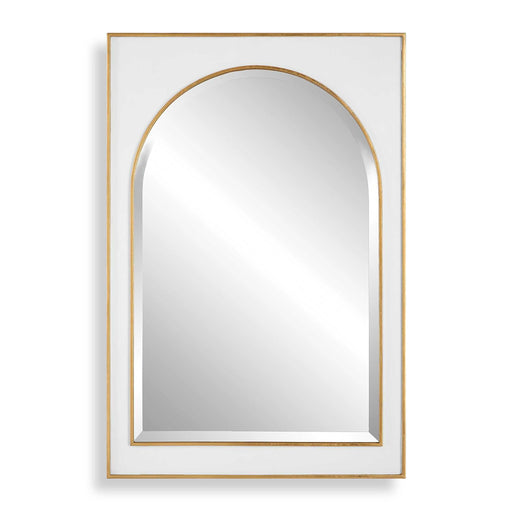 UttermostThis Iron Mirror Showcases A Gloss White Finish Surrounding The Classic Arch Shape, Accented With Raised Edges Finished In A Lightly Antiqued Gold ...