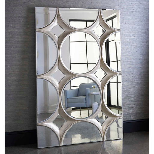 RevelationDimensional aesthetics that feature silver leaf accents with circular beveled mirrors. Group multiple pieces together to create a striking wall acc...