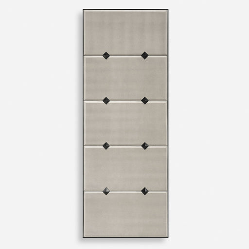 UttermostThis Unique Vanity Mirror Features Repeated Ceramic Tiles With Convexed Centers Finished In An Antiqued Silver-champagne Plating, Encased In A Blac...