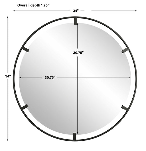UttermostRefined Iron Frame Finished In A Sleek Satin Black, Embracing A Floating Polished Edged Mirror. Cashel - Round Iron Mirror - Black34.0"W x 1.25"D x...