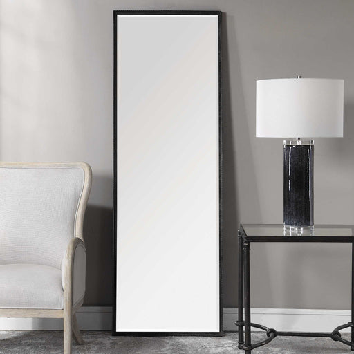 UttermostThis Stately Mirror Features A Wood Frame Finished In Antiqued Silver Leaf With Black Undertones And A Gray Glaze. Mirror Has A Generous 1 1/4" Bev...
