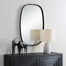 Radius corners give this contemporary metal frame a softer look. Finished in a satin black, this mirror can be hung either vertically or horizontally.