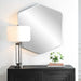 • Black Frame Surrounds Unique Diamond Shaped Mirror With Radius Corners.