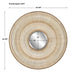 This Round Mirror Makes A Striking Addition To Any Space. The Piece Showcases A Substantial Curved Iron Frame Finished In An Elegant Brushed Antique Gold With A Beveled Center Mirror.