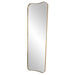 This Oversized Mirror Features A Sophisticated Stainless Steel Frame Finished In A Rich Antique Brass. The Curved Silhouette Adds A Contemporary Feel To This Piece.