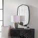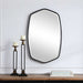 This Hand Forged Iron Mirror Frame Features A Unique Shape With Elegant Curves, Finished In A Streamlined Satin Black. Mirror Has A Generous 1 1/4" Bevel.