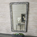 A solid iron outer channel encapsulates a three inch wide bone inlay frame. The tapered shape can be hung with metal cleat (provided) in two directions, creating great opportunities for many dramatic installation options.