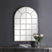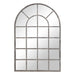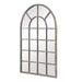 Finished in an antique rustic gray, this metal, arched windowpane frame will add interest to any space.