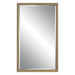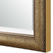The heavily textured profile of this frame is enhanced by a gold finish against a dark brown background. The mirror has a 1" bevel and may be hung either vertically or horizontally.