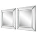 These elegant frameless mirrors feature beveled mirror panels, which are slightly sloped away from the beveled center mirror. Sold as a set of two, these frames are sized perfectly to be grouped together to create a beautiful wall display.