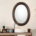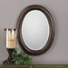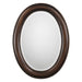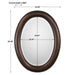 Beaded details enhance the simplicity of this oval frame. The finish is a dark bronze with antique gold undertones. The mirror has a 1" bevel and may be hung either vertically or horizontally.