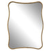 This Curvy Vanity Mirror Features A Shaped Iron Frame Finished In A Heavily Antiqued Gold. May Be Hung Horizontal Or Vertical.