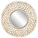 Handcrafted From Solid Iron, This Round Mirror Features A Dramatic 3-dimensional Frame Made From Curled Gold Leaf Details. Mirror Features A Generous 1 1/4" Bevel.