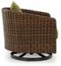 This outdoor swivel lounge chair recalls the aesthetics of nature to bring an inviting, high-style feel to your patio or lanai. Its Nuvella+™ performance fabric is made with enhanced UV resistance, so the chic green hue stays brighter for longer. Worried about the weather? Don't sweat it—the durable resin wicker withstands the elements from season to season.