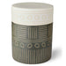 The beautiful Hieroglyphics Garden Stool makes a perfect side table. Crafted from terracotta and decorated with etched designs reminiscent of symbols found in ancient writing, finished in a grey and white matte glaze. May be used outdoors, but protection from freezing temperatures is recommended.