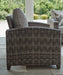 Details | Includes sofa, coffee table and 2 chairs, All-weather resin wicker handwoven over rust-free aluminum frame with durable powder coated finish, Aluminum tabletop, Nuvella® (solution-dyed polyester) high-performance fabric, Stainless steel hardware, Designed to withstand the harsh elements of the outdoors, Throw pillows included, Clean fabric with mild soap and water, let air dry; for stubborn stains, use a solution of 4 oz. bleach to 28 oz. water, Assembly required | |