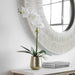 A Gracefully Arching Stem Of White Orchids With Reindeer Moss Accents Over A Bed Of Naturally Preserved Moss, Placed In A Contemporary Hammered Brass Metal Pot. Container Is 4.5" W X 4.5" H X 4.5" D.