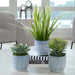 Puebla - Greenery In Blue & White Pots (Set of 3) - Green