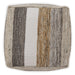 Weaving together stripes in grounded, earthy tones, this pouf is a natural beauty. It combines simple flair and function, with hues of white, honey and shades of gray and brown to keep things casual. Whether used as a footrest or a side table, this piece has an undeniably universal appeal.