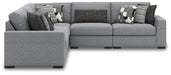 Details Includes 5 modular pieces: left-arm facing corner chair, 2 armless chairs, wedge and right-arm facing corner chair, "Left-arm" and "right-arm" describe the position of the arm when you face the piece, Modular pieces can float anywhere; sides are finished (with no connectors), Corner-blocked frame, Reversible seat and back cushions; high-resiliency foam cushions wrapped in poly fiber, Accent pillows included; pillows with soft polyfill, Polyester upholstery, Next-Gen Nuvella is a performance fabric that is soft, easy to clean, stain-resistant and durable, Easy-to-remove zippered covers for machine washing, Clean fabric with mild soap and water, let air dry; for stubborn stains, use a solution of 4 oz. bleach to 28 oz. water, Low-profile accent legs with faux wood finish, Platform foundation system resists sagging 3x better than spring system after 20,000 testing cycles by providing more even support, Smooth platform foundation maintains tight, wrinkle-free look without dips or sags that can occur over time with sinuous spring foundations