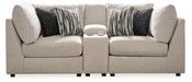 With its casual-contemporary aesthetic and modular design, this sectional makes way for high style and indulgent comfort. Rest assured, the thickly cushioned storage console includes not only a pair of cup holders, but also a USB port to keep you powered up while you unplug. Plush-to-the-touch chenille-feel upholstery in bisque beige is pure delight.