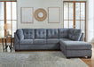This sectional with chaise takes a homey approach to high style. Its denim-inspired fabric has classic versatility, while a contemporary silhouette and stitched details keep the look totally on trend. And you can count on comfort—the chaise invites you to kick back and stretch out.