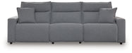Details | Includes 3 modular pieces: left-arm facing power recliner, armless chair and right-arm facing power recliner, "Left-arm" and "right-arm" describe the position of the arm when you face the piece, Versatile modular pieces fit together in a variety of configurations, One-touch power control with adjustable positions, Easy View™ adjustable headrest and zero-draw USB port, Zero-draw technology only consumes power when the USB receptacle is in use, Corner-blocked frame with metal reinforced seat, Attached back and seat cushions; high-quality foam cushions wrapped in poly fiber, Polyester upholstery, Next-Gen Nuvella™ is a family-friendly fabric that is soft, easy to clean, stain-resistant and durable, Clean fabric with mild soap and water, let air dry; for stubborn stains, use a solution of 4 oz. bleach to 28 oz. water, Throw pillows with easy-to-remove zippered covers for machine washing; pillows with soft polyfill, Zero wall recliner design requires minimal space between wall and chair back, Power cord included; UL Listed | |