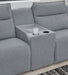 Details | Includes 3 modular pieces: left-arm facing power recliner, console and right-arm facing power reclining back chaise, "Left-arm" and "right-arm" describe the position of the arm when you face the piece, Versatile modular pieces fit together in a variety of configurations, One-touch power control with adjustable positions, Easy View™ adjustable headrest and zero-draw USB port, Zero-draw technology only consumes power when the USB receptacle is in use, Corner-blocked frame with metal reinforced seat, Attached seat and back cushions; high-quality foam cushions wrapped in poly fiber, Polyester upholstery; Next-Gen Nuvella™ is a family-friendly fabric that is soft, easy to clean, stain-resistant and durable, Clean fabric with mild soap and water, let air dry; for stubborn stains, use a solution of 4 oz. bleach to 28 oz. water, Throw pillows with easy-to-remove zippered covers for machine washing; pillows with soft polyfill, Console with plexiglass top and 2 cup holders, Zero wall recliner design requires minimal space between wall and chair back, Power cord included; UL Listed | |