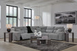 Details Includes 5 modular pieces: left-arm facing power recliner, power armless recliner, armless chair, wedge and right-arm facing power recliner, "Left-arm" and "right-arm" describe the position of the arm when you face the piece, Versatile modular pieces fit together in a variety of configurations, One-touch power control with adjustable positions, Easy View™ adjustable headrest and zero-draw USB port, Zero-draw technology only consumes power when the USB receptacle is in use, Corner-blocked frame with metal reinforced seat, Attached back and seat cushions; high-quality foam cushions wrapped in poly fiber, Polyester upholstery, Next-Gen Nuvella™ is a family-friendly fabric that is soft, easy to clean, stain-resistant and durable, Clean fabric with mild soap and water, let air dry; for stubborn stains, use a solution of 4 oz. bleach to 28 oz. water, Throw pillows with easy-to-remove zippered covers for machine washing; pillows with soft polyfill, Zero wall recliner design requires minimal space between wall and chair back, Power cord included; UL Listed
