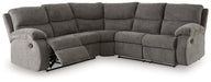 Cozy comfort is on the rise with this reclining sectional. So velvety soft, the trendy pewter-hued chenille upholstery is made for everyday indulgence. Overstuffed and stylishly wrapped, the sumptuous cushions and pillow top armrests display the comfortable side of contemporary. And with one easy pull, you're on your way to endless relaxation with plenty of room to stretch out.