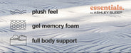 Comfort level: medium, Flame-retardant polyester comfort fiber, Luxury loft fiber, High-density plush quilt foam for support and comfort; high-density comfort foam, High-density gel memory foam for lumbar support; base support foam for added stability, Power-packed wrapped coil unit with Ashley Edge to minimize motion transfer and increase support, Hyper Cool luxury 4-way stretch knit cover for uniform comfort and durability, Adjustable base compatible, 10-year non-prorated warranty, Note: Purchasing mattress and foundation from two different brands may void warranty; check warranty for details, Foundation/box spring sold separately, Mattress ships in a box; please allow 48 hours for your mattress to fully expand after opening, State recycling fee may apply |