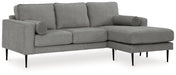 Simple comfort meets modern function in this sofa chaise. An apt addition to apartments and other small spaces, this slim-profiled piece welcomes you with its cozy character. A subtle chevron pattern on the cushions refresh the classic neutral hue, elevating the look while still suiting a variety of styles. Black accent legs add a dash of contemporary flair.