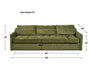 Lounge in pure decadence. The fully-upholstered solid hardwood frame features a comfortable sloped arm. The Trillium-filled cushions include one bench cushion with biscuit tufting, and three loose back cushions that can be flipped for the ultimate comfort. Three lush lumbar pillows are included. Fully upholstered in a soft and rich martini olive velvet. The three lush lumbar pillows are included. Made in the furniture capital, High Point, NC.