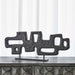 Inspired by ancient hieroglyphics, this abstract sculpture is chiseled from solid Mango wood. It appears to be free-standing as two thin rods cleverly secure it to an iron stand. Pair with the smaller size sculptures, or mix into a grouping of accessories for an even more impressive sculpture display.